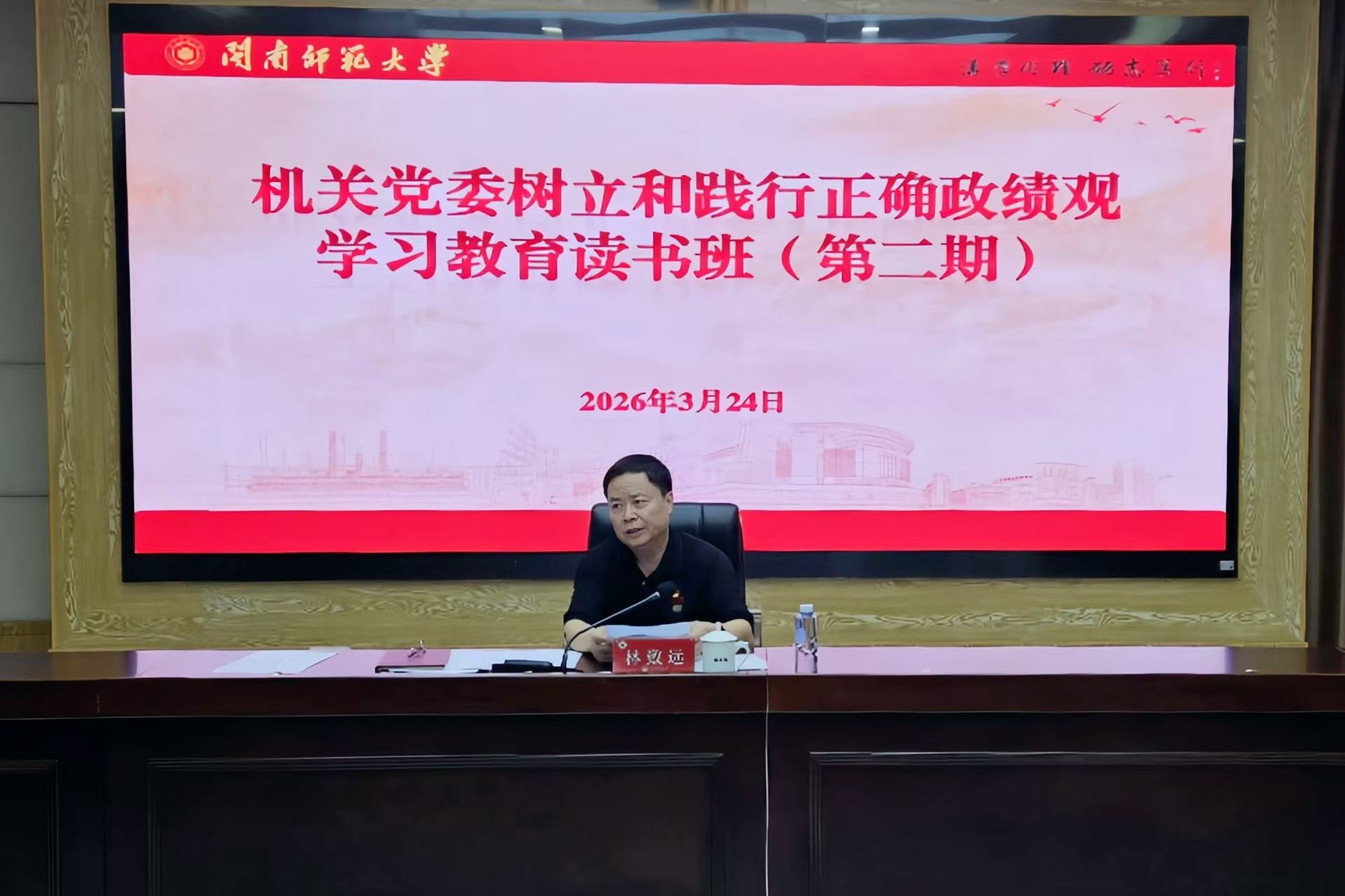 3月24日,机关党委举办树立和践行正确政绩观学习教育第二期读书班。校党委副书记、机关党委书记林致远主持读书班并讲话。