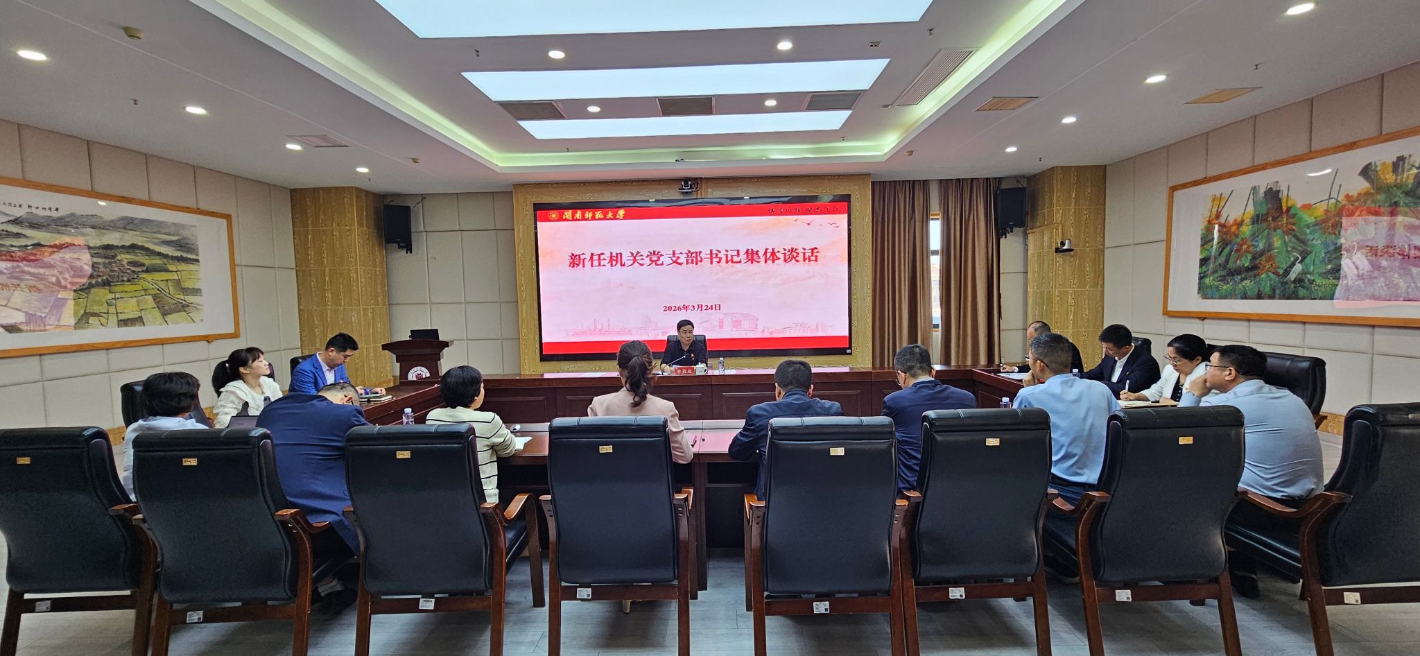 3月24日下午,机关党委召开机关新任党支部书记集体谈话会。校党委副书记、机关党委书记林致远同10位新任机关教辅单位党支部书记进行集体谈话。